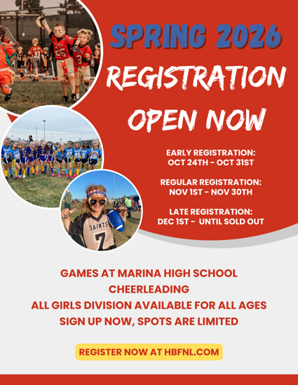 The Registration "Welcome to Huntington Beach Friday Night Lights Football #1 Flag League in the US!" is not currently available.